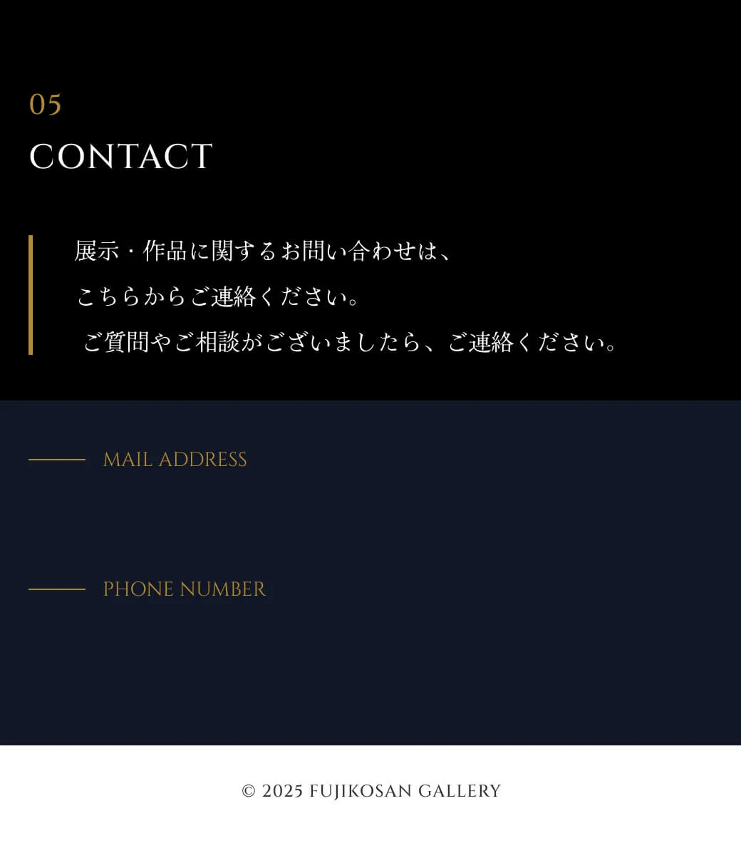 収益を第一とするのではなく、作品の販売を通じて、表現者の育成と紹介を支え、静かなプロデュースを続けていきます。ここFUJIKOSAN GALLERYが、出会いを大切にしながら、感覚と語らいが交差する場所になれば幸いです。